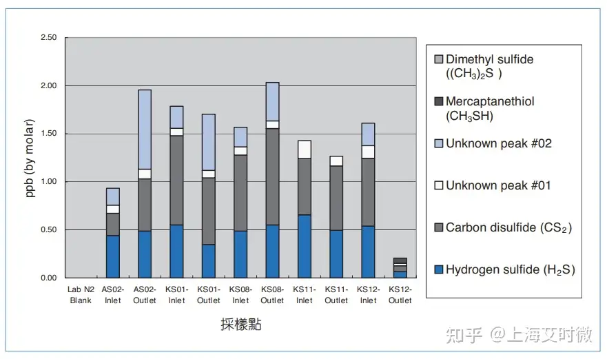 图 6.半导体厂次无尘室区域(sub-fab) 空气中含硫化合物之含量分布。